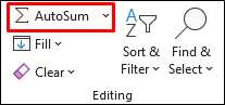 In Excel kun je ook met behulp van de functietoets een optelling maken. Deze toets vind je op de tabblad “Start” of “Home” wanneer je Officetaal Engels is: