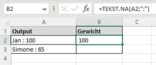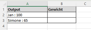 In kolom B staat nu het gewicht van de betreffende persoon. Uiteraard werkt deze formule ook met andere tekens dan het dubbele punt teken.