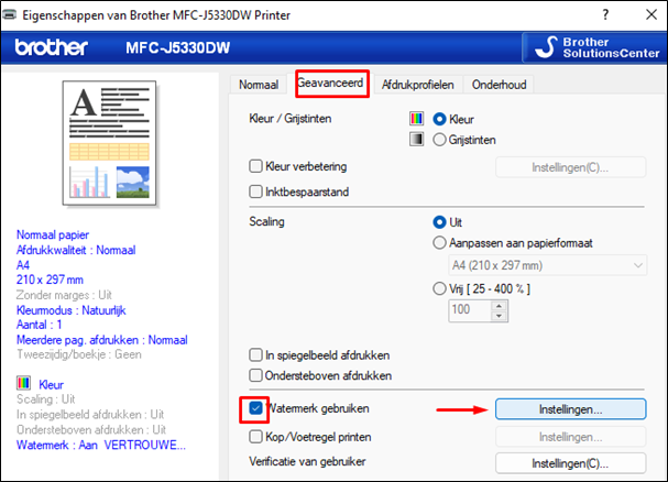 Na je keuze te hebben gemaakt druk je op “OK”. Let op: Het watermerk zie je niet op je tabblad maar wel bij het afdrukken.