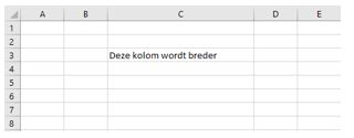 Opdracht 3B: Vul cel C3 met de tekst “Deze kolom wordt breder” en pas de kolombreedte aan naar 30.